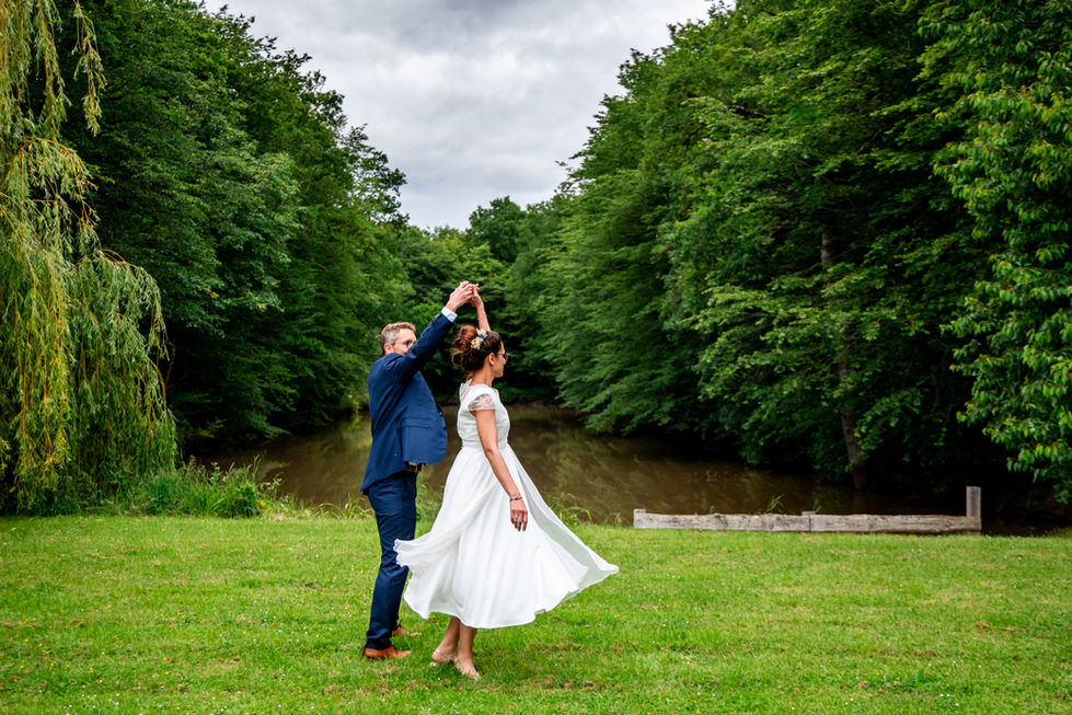 Delphine, une artiste dans l'âme qui s'est investie corps et âme dans la création de sa robe de mariée. Le graphisme floral de la broderie et la légèreté aérienne de sa jupe en mousseline de soie furent des éléments forts dans la création de cette pièce unique.
